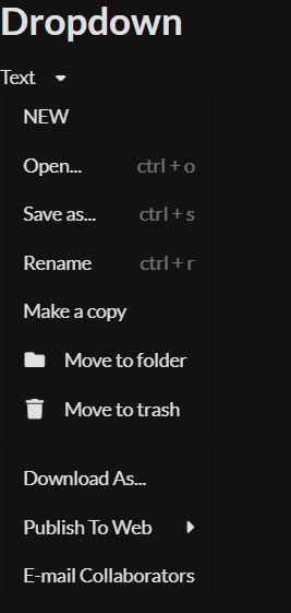 이렇게 Text라고 쓰여진 버튼? 을 누르면 위/아래로 선택할 수 있는 콤보 상자처럼 나오는 기능이 Dropdown이다. 이 기능은 '움직임'이 있어서 그런지 javascript를 initialize해야 사용할 수 있다.